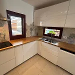 A vendégek a felszerelt konyhasarokban készíthetnek ételeket, vagy étkezhetnek az étkezőben és kültéri étkezőhelyen. A konyhában kávé/tea készítő, hűtő és sütő is elérhető.
